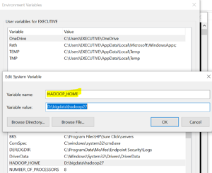 4)set HADOOP_HOME =D:\bigdata\hadoop27 in environment variable.